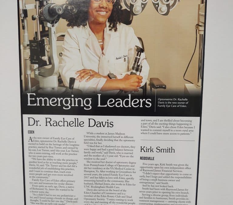 While most of the textile industry has moved out, Eden still has a high need for vision and eye health care and third generation owner Dr. Rachelle Davis is filling that need.  She joined the practice in 2017 after working in ophthalmology and other private practices.